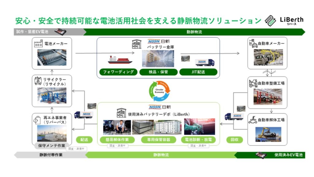 『LiBerth』は、単なる輸送に留まらず、リチウムイオン電池の保管からリサイクルまで、社会課題の解決に挑む日新の決意が詰まったソリューションです。物流の未来を変える一歩を、ご紹介しております。