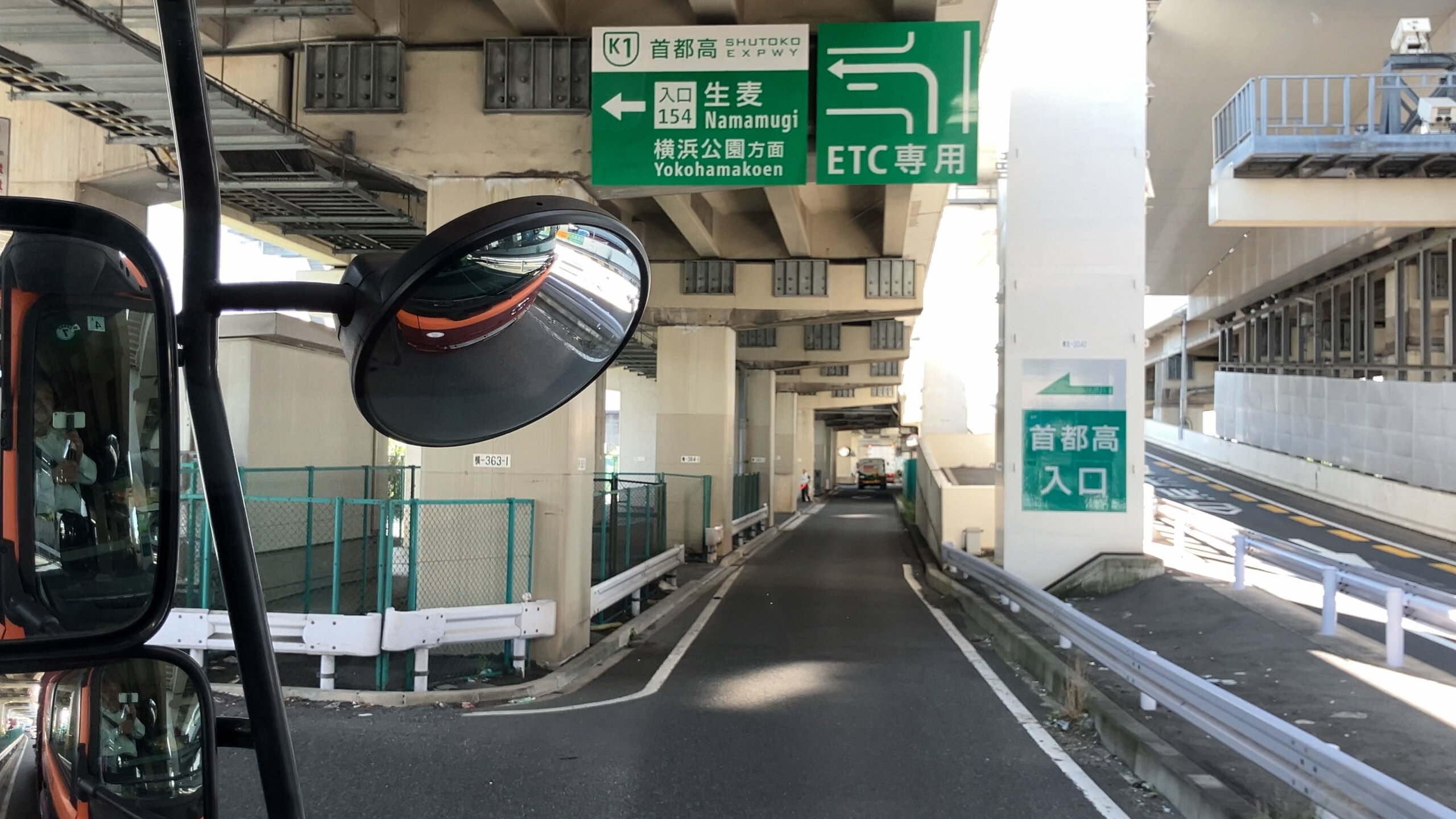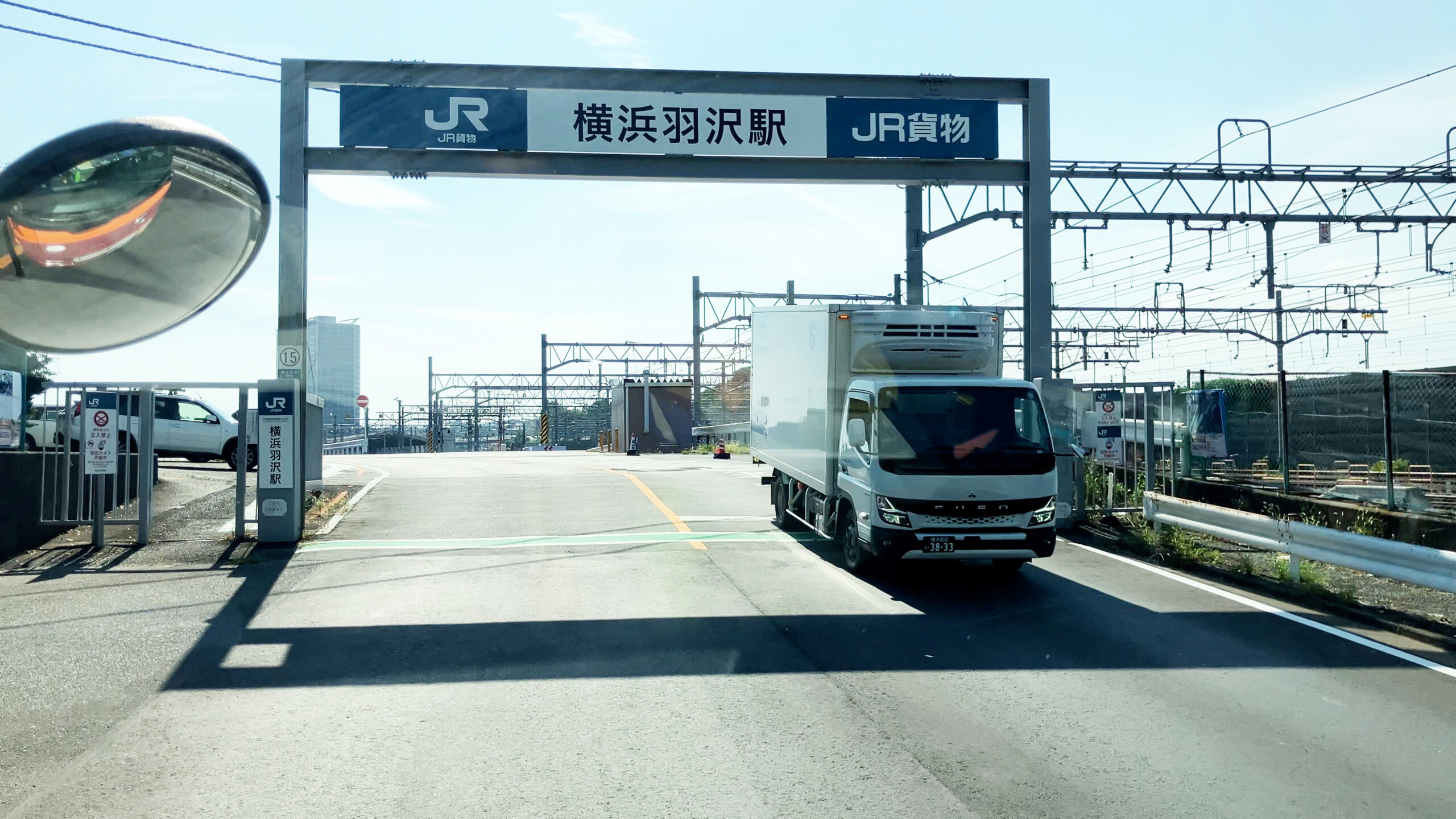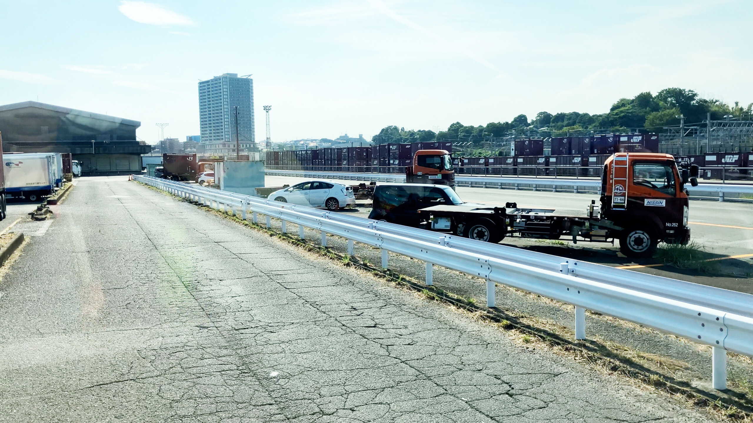コンテナへの積み付けと固縛を終え、いよいよ萩原さんのトラックに同乗して、鉄道輸送のハブである横浜羽沢駅へと向かいます。生麦から横羽線~三ッ沢線を経由して、最寄の保土ヶ谷ICに向かいます。