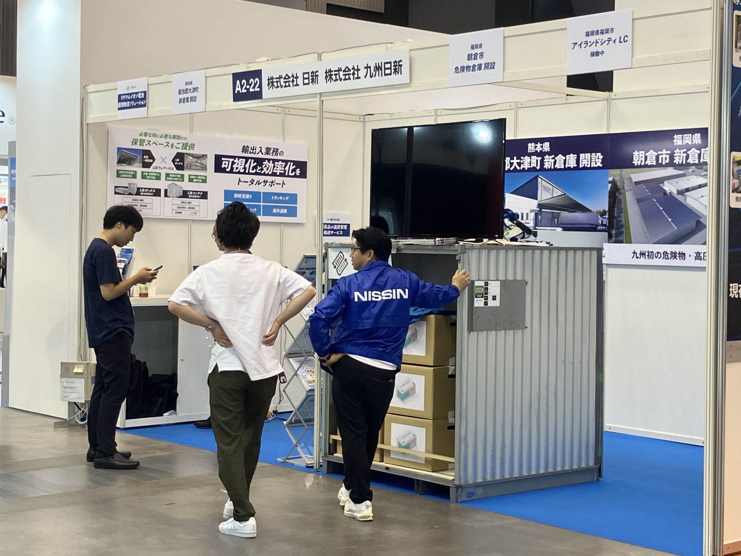 ICLCでの5トンコンテナの荷卸しは、低床式プラットホームで行われました。特筆すべきは、建屋を貫く全長約100mの全天候型・屋内車路です。これにより、荒天時でも水濡れの心配がなく、LiBボックスのようなデリケートな荷物や展示品も、雨風にさらされることなく、安全に荷役作業や倉庫内への転送が可能となっています。今回輸送したLiBボックスは、その後無事展示会場のマリンメッセ福岡に搬入され、会期中の2日間、リチウムイオン電池の静脈物流ソリューション「LiBerth」のPRを行いました。