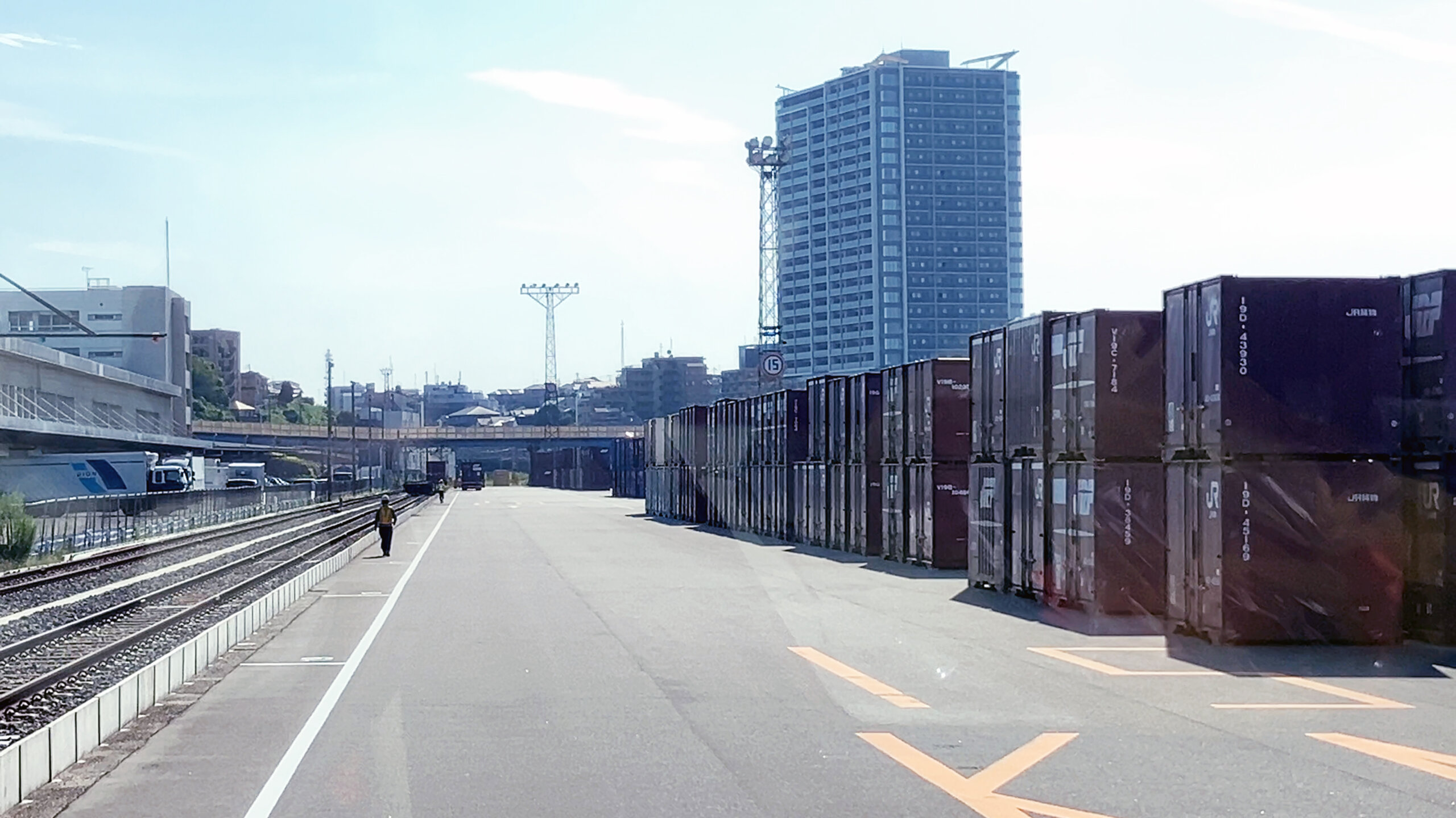 横浜羽沢駅は、横浜駅の西北西約7kmに位置するJR貨物専用駅です。駅の近くには、第三京浜道路の羽沢インターチェンジ(IC)や環状2号線が通っており、横浜市内の広域的な集配送に対応できる極めて交通アクセスに優れた立地にあります。首都圏から各地へ向かう鉄道貨物輸送の重要拠点の一つとして機能しています。鉄道コンテナ輸送の手配を行う、日新・羽沢営業所も、構内の一角に事務所を構えています。