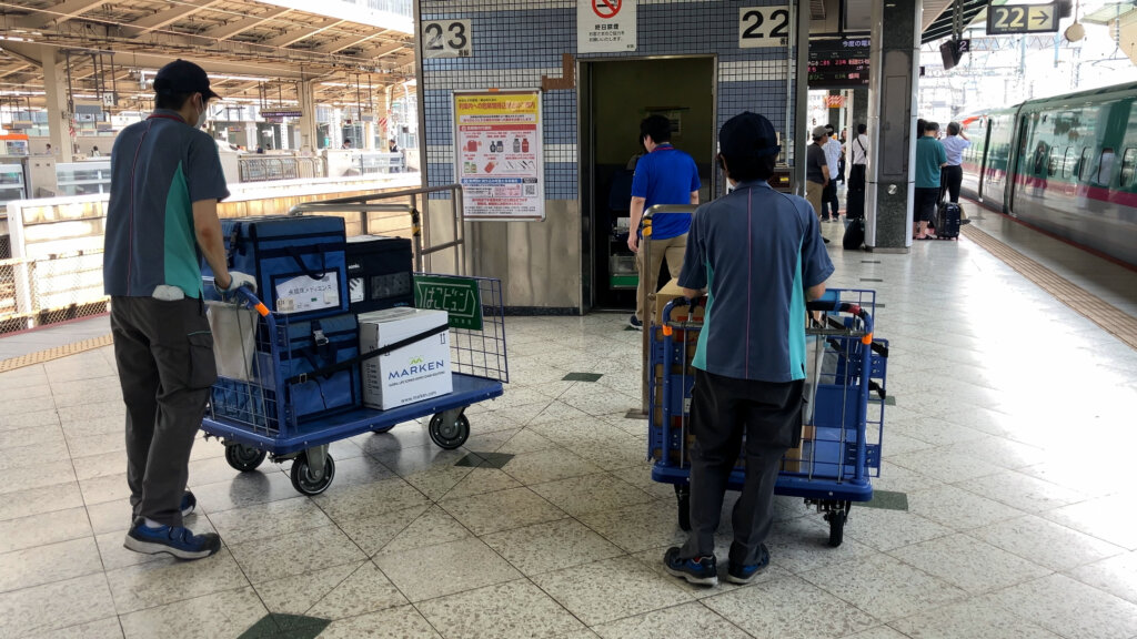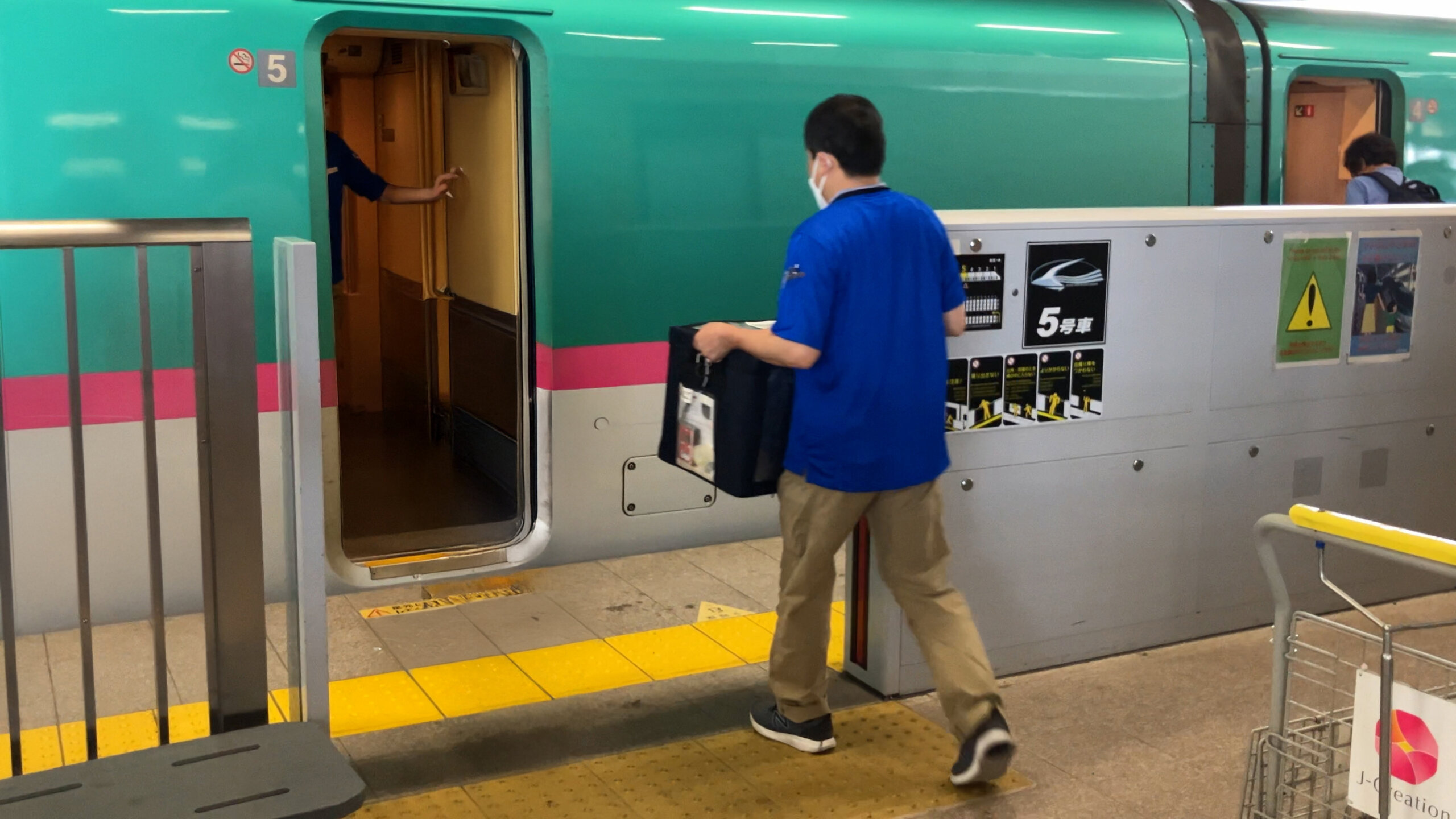 復路の新青森駅から新子安駅は、ジェイアール東日本物流が提供する新幹線の即日配送サービス「はこビュン Quick」を利用して輸送しました。(東京駅から新子安駅まではハンドキャリー)実際の輸送時間は、往路が約5時間40分ほど、復路が約4時間30分弱で、合計10時間ほどにも及びました。