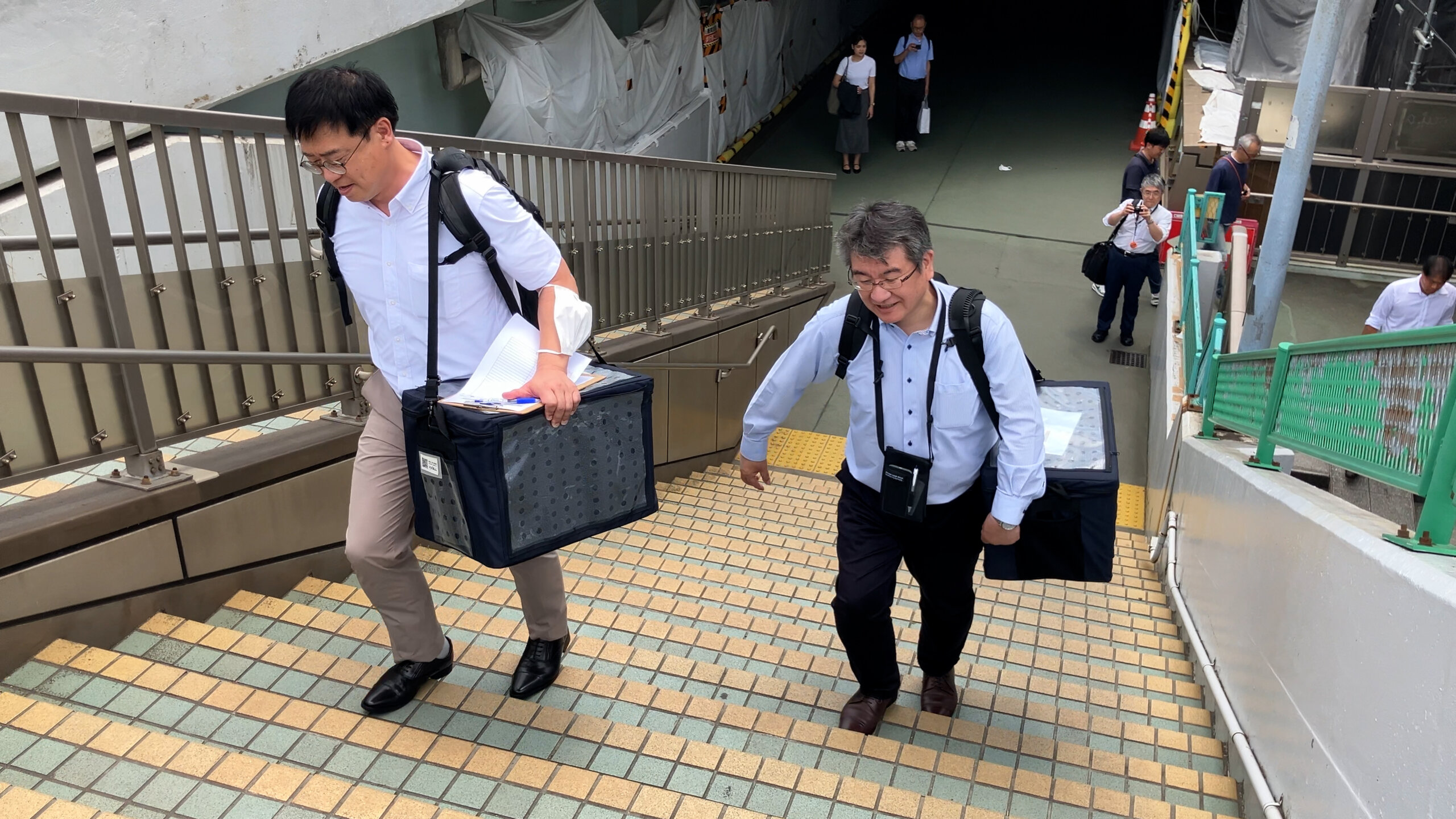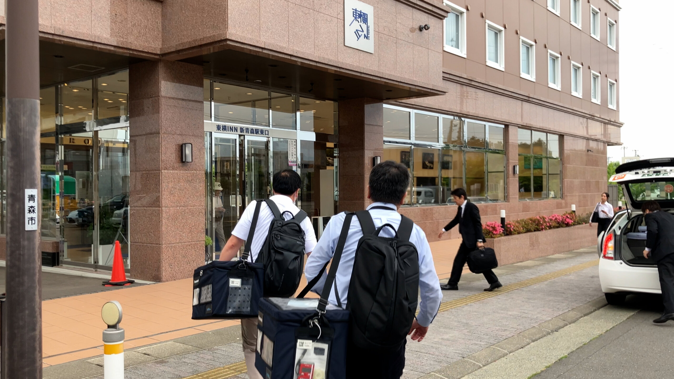 新子安から新青森までの往路・ハンドキャリー輸送実験の様子